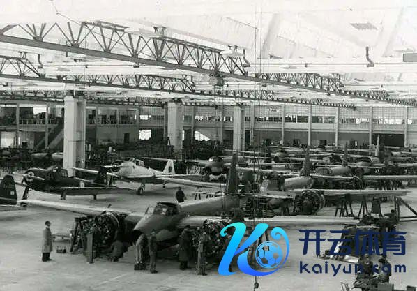 图1. 20世纪40年代末繁荣兴旺的阿根廷飞机制造厂制造车间,远景中正在安装发动机的是阿根廷自行研制的IAe-24型轻型轰炸机