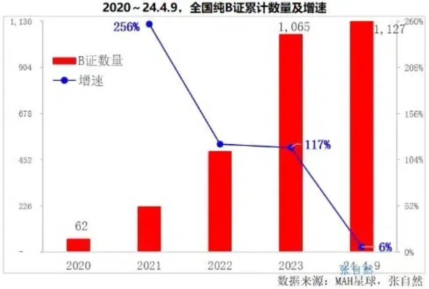 不外而后,B证公司数目快速蹿升,增速直到2024年才跌落。华义书记诉界面新闻,持有仿制药B证的主如果CRO(医药研发外包)和CSO(医药销售外包)公司,后者占到大无数。