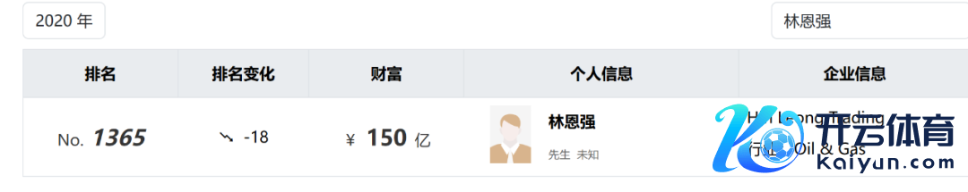 在2020年的胡润宇宙富豪榜上,林恩强的身家达到150亿元东谈主民币。