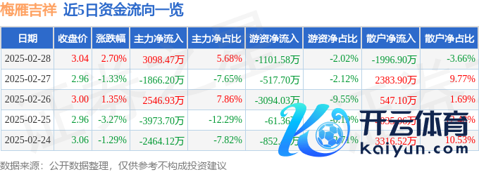 本站音书体育游戏app平台,为止2025年2月28日收盘,梅雁祯祥(600868)报收于3.04元,高涨2.7%,换手率9.36%,成交量177.72万手,成交额5.46亿元。