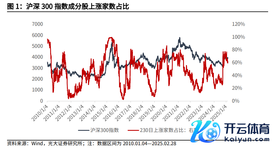 其中N=230,N1=50,N2=35。从高潮流派占比筹谋来看,沪深300指数刻下督察神志低景气区间。