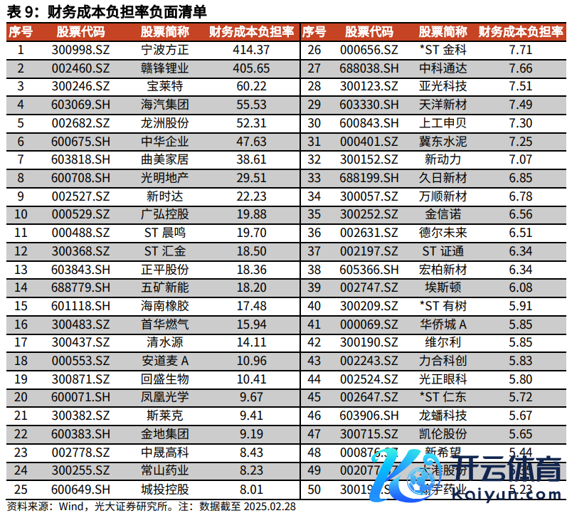 为止2025年2月28日,财务资本背负率较高的股票有宁波方正、赣锋锂业、宝莱特、海汽集团、龙洲股份、中华企业、曲好意思家居、光明地产、新时达、广弘控股、ST晨鸣、ST汇金、正平股份、五矿新能、海南橡胶、首华燃气、净水源、安说念麦A、回盛生物,其筹谋数值均在10倍以上。