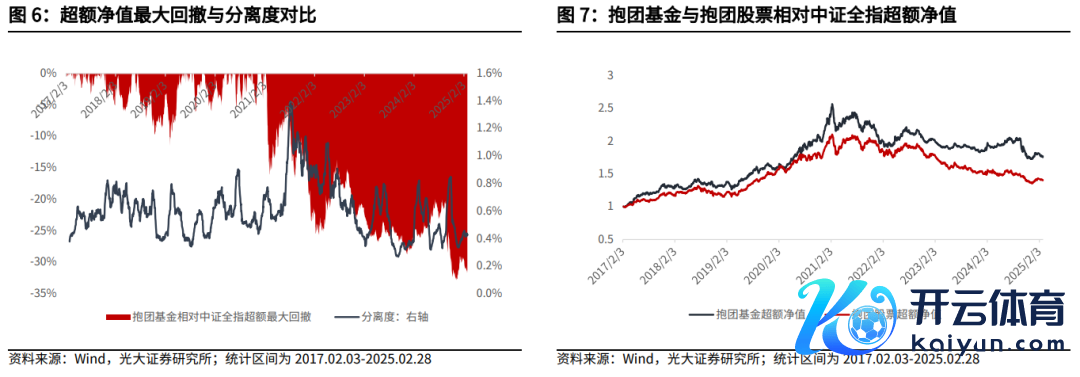 为止2025年2月28日,基金抱团分离度督察低位震撼,基金抱团进程较高。最近一月抱团股和抱团基金逾额收益出现小幅下行。
