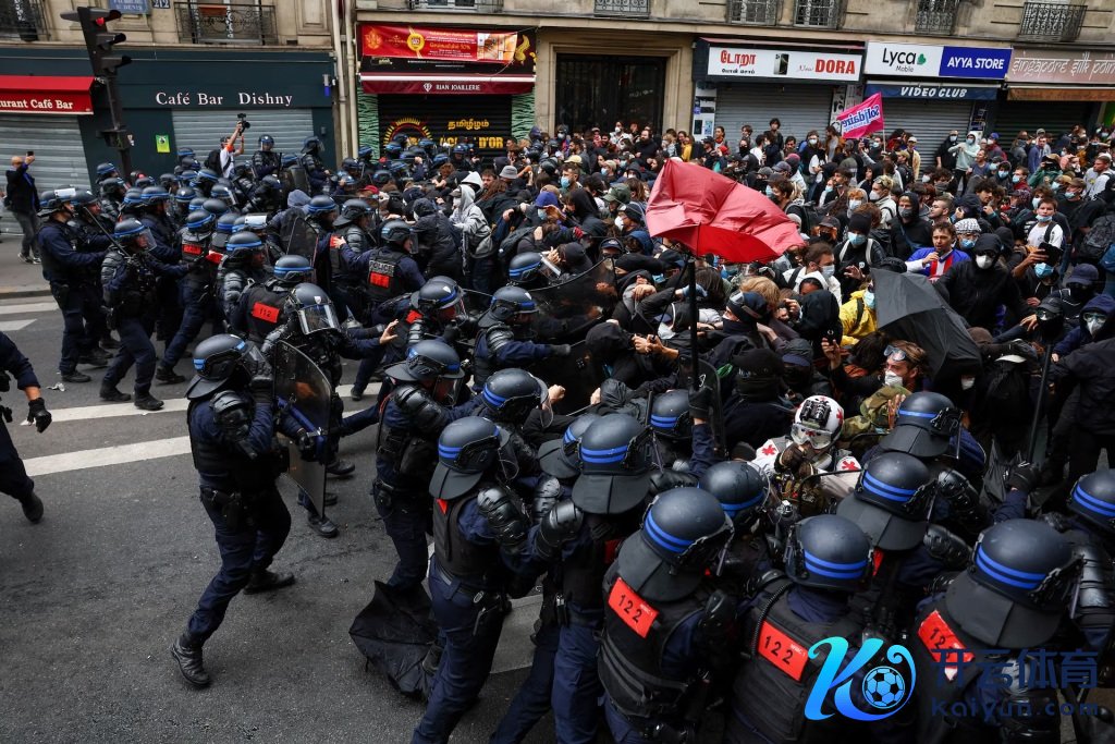2025年9月10日,在法国巴黎,身着防暴装备的考察与蚁集在抗议行径中的请愿者发生冲破。
